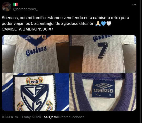 “Yo me hice de Vélez en sus épocas doradas con Bianchi y hoy veo que muchos pibitos de mi edad en aquel entonces lo único que hicieron es comer mierda por así decirlo y se merecen ver a Vélez campeón o por lo menos pelear cosas, como lo marca nuestra historia”, cuenta Diego (@DRa60208), quien publicó una de sus camisetas del Fortín para intentar emprender su aventura al Madre de Ciudades.