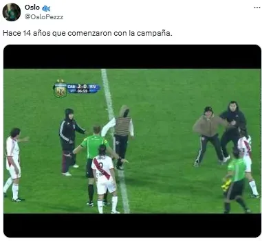 Ya en Santiago del Estero, un punto alto de publicaciones se dio cuanto un ‘invasor’ ingresó al campo y se robó la pelota, dando pie a una campaña contra la piratería. El evento salpicó a Chiqui Tapia, presidente de AFA, quién fue protagonista de varios de aquellos memes.