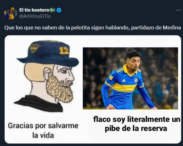 En tanto, en la segunda mitad, Medina y Solari fueron de los más mencionados debido a sus goles. Sin embargo, también hubo algunas imágenes y cargadas para Cavani, debido a que no tuvo un buen partido y salió del partido. También Diego Martínez se sumó a las tendencias debido a que puso varios defensores sobre el final del encuentro. Además, sobre el final del partido, un cruce entre Sergio Romero y Miguel Borja generó algunos memes.