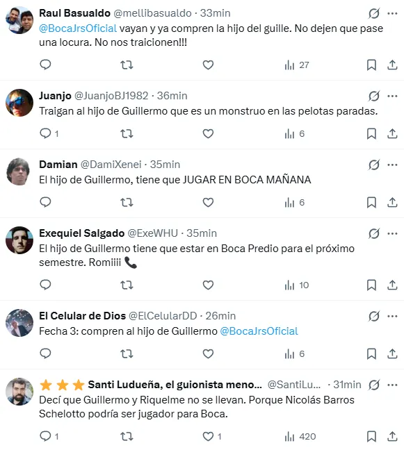 - Hinchas de Boca Juniors solicitaron en redes sociales el fichaje del hijo de Guillermo.