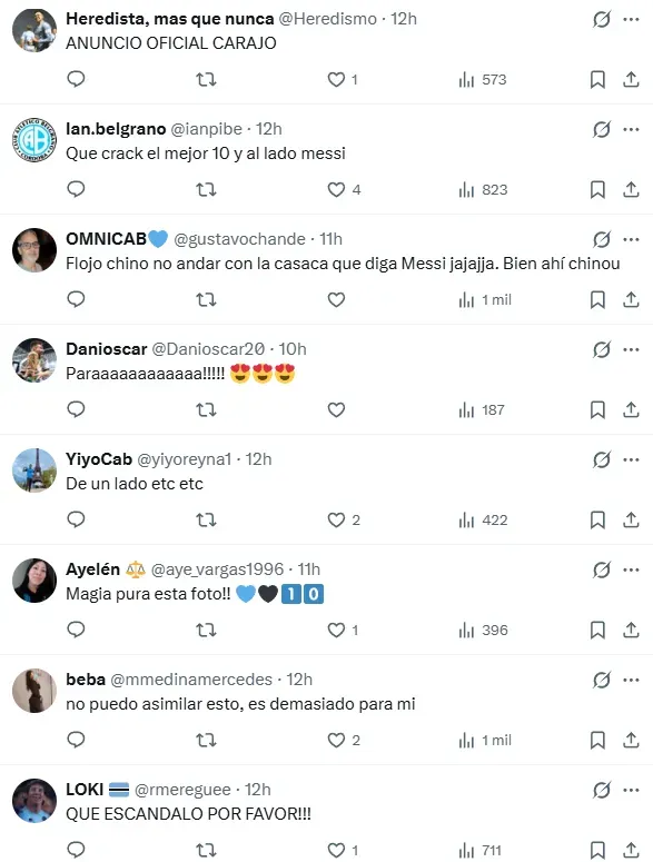 La cuenta oficial de Belgrano no tardó en compartir el momento en un posteo, escribiendo “AAAAAAAAAA ES DEMASIADO FULBOOOO” para describir el encuentro. La publicación despertó miles de interacciones, sobre todo de los hinchas cordobeses al ver al mejor jugador de la historia con sus colores.