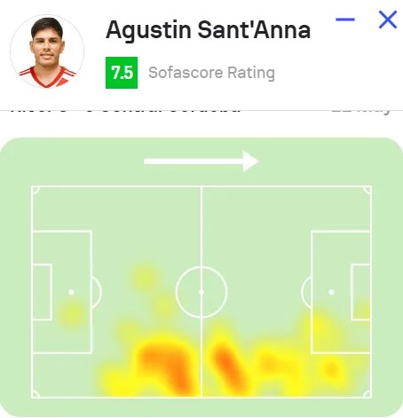 El mapa de calor de Agustín Sant’Anna vs. Central Córdoba