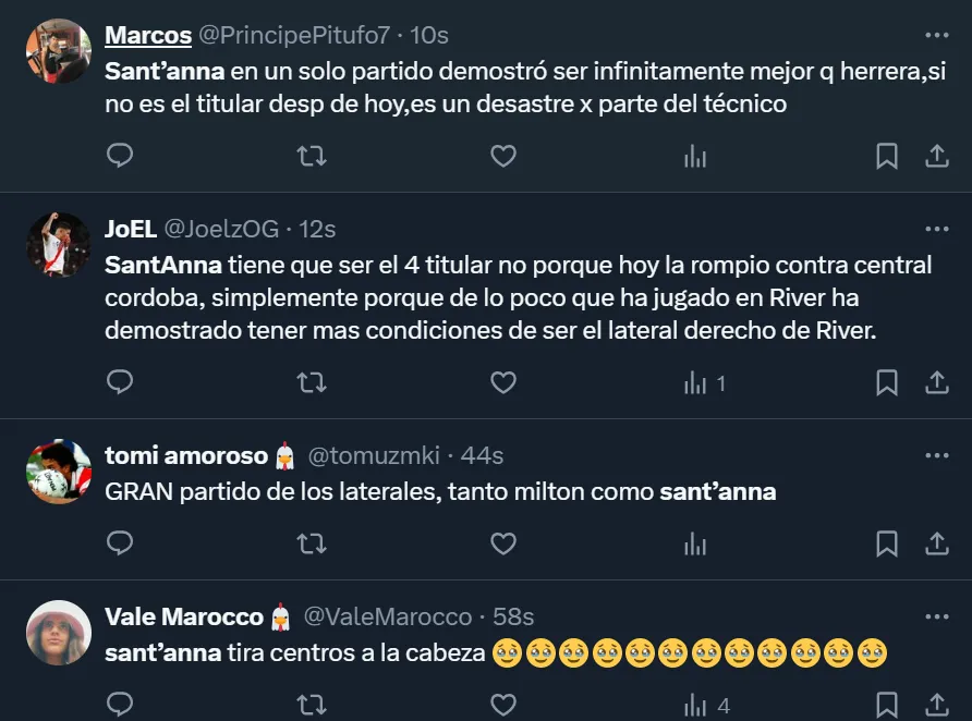 A raíz de los datos que obtuvo por medio de su actuación, los fanáticos de River hicieron un pedido unánime por medio de Twitter: que el ex Defensa y Justicia no salga más del equipo titular, ya que notan que posee un nivel superior al de Andrés Herrera, quien venía ocupando la posición. ¿Martín Demichelis escuchará la petición?
