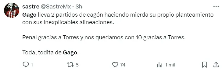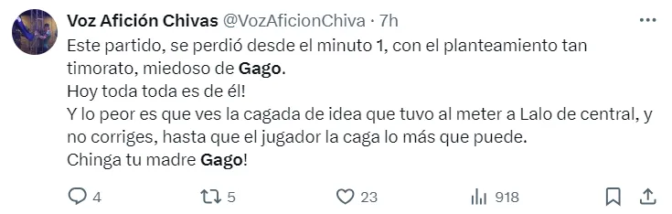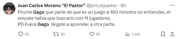 “No tiene nada de técnico”, “miedoso” y “fuera Gago” son solo algunos de los mensajes de los hinchas y periodistas ante la durísima derrota de Chivas. La próxima parada volverá a ser en su estadio, recibiendo a León el sábado por la Liga MX.
