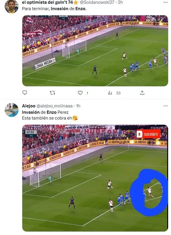 Pasado el escándalo entre los jugadores, el cual derivó en varias expulsiones, los hinchas del Xeneize encontraron un detalle revelador en la jugada que le permitió al Millonario abrir el marcador: una invasión de Enzo Pérez en la medialuna del área donde Borja puso el 1-0.