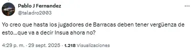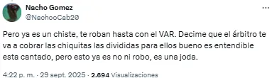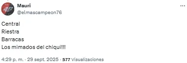 “100% Lucha era más transparente que cualquier partido de Barracas”, disparó uno de los hinchas del fútbol argentino tras ver esta decisión. Otro, en cambio, apuntó contra Chiqui Tapia, presidente de la AFA quién le da el nombre al estadio de Barracas: “Es la Liga Chiquitapiense de Fútbol. Una vergüenza”. Afortunadamente para el conjunto cordobés, Jara puso el encuentro en tablas en el arranque del complemento.