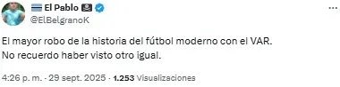 Nicolás Fernández había convertido la igualdad, pero el VAR llamó a Andrés Gareano. Tras una larga revisión, el árbitro cobró una falta de Franco Jara sobre la defensa de Barracas Central, una decisión que generó fuertes reacciones en redes sociales por la falta de solidez en la resolución.