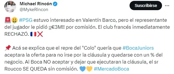 Pero de esta historia, ahora, salió a la luz una versión paralela. Ya con Valentín Barco fuera de Boca y con la mente puesta en lo que será su presentación con la Selección Argentina Sub 23 en los Juegos Preolímpicos de Venezuela (torneo organizado por Conmebol con el que repartirá dos cupos para los Juegos Olímpicos de París 2024) trascendió un nuevo detalle en referencia con el proceder de Adrián Ruocco.