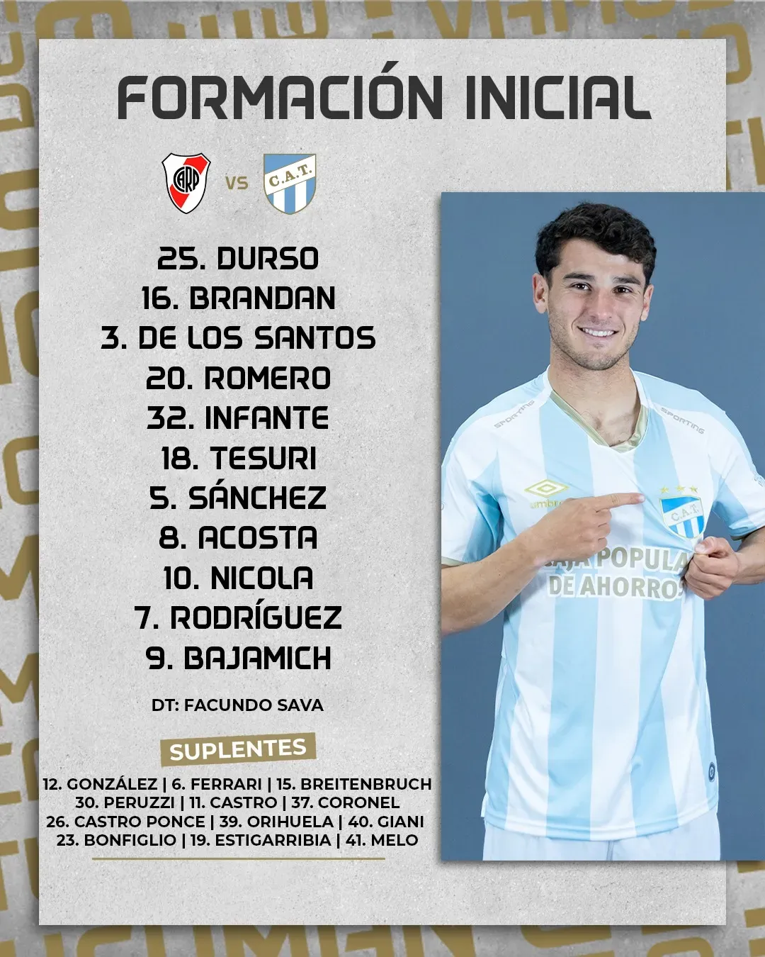 Los dirigidos por Sava salen a la cancha con: Tomás Durso; Moisés Brandán, Mauro De los Santos, Nicolás Romero, Juan Infante; Renzo Tesuri, Adrián Sánchez, Guillermo Acosta, Franco Nicola; Luis Miguel Rodríguez y Mateo Bajamich.