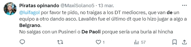 Los comentarios de los hinchas de Belgrano en las redes sociales