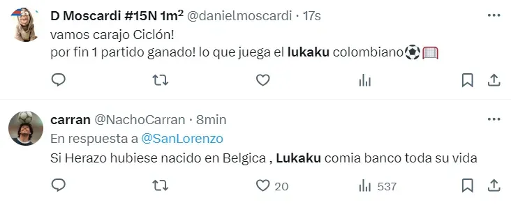 Después de un interesante debut contra el Pincha, el atacante de 27 años ingresó por segunda vez al Pedro Bidegain convencido de que iba a llegar al gol. El Lukaku Colombiano tuvo buenas combinaciones con Bareiro, generó situaciones y despertó muchos aplausos de parte de la parcialidad local.