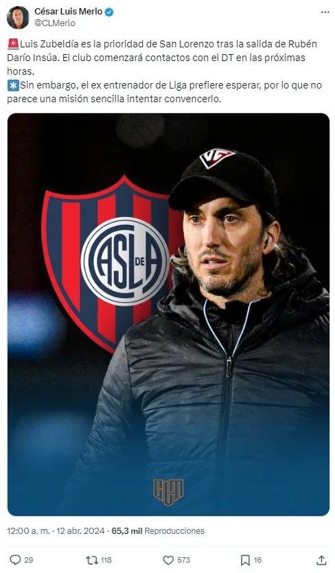 Según informó el periodista César Luis Merlo, el principal apuntado para tomar las riendas de la dirección técnica del conjunto azulgrana es Luis Zubeldía. El entrenador argentino con pasado en Lanús, Racing, entre otros, es la primera opción en Boedo.