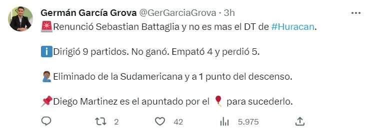 Sebastián Battaglia renunció y dejó de ser el técnico de Huracán