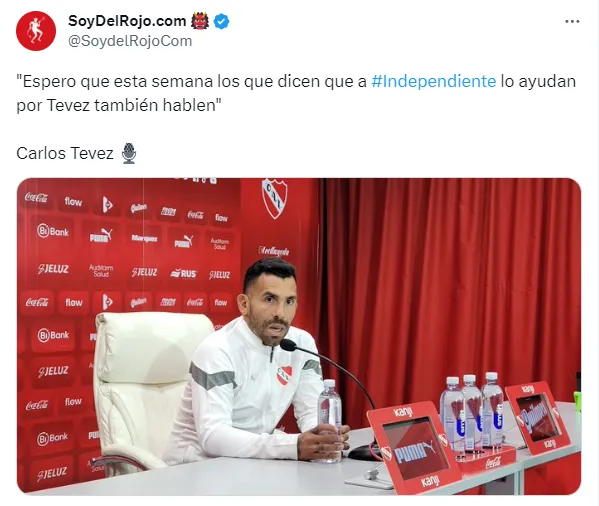 Luego, sobre las acusaciones que rodean al Rojo, Carlitos salió al cruce: “Quiero ver esta semana los que dicen que a Independiente lo ayudan por Tevez. Ya me tienen un poquito cansado”. Un clima tenso previo al clásico de Avellaneda que protagonizarán Racing e Independiente el próximo fin de semana en el Cilindro.