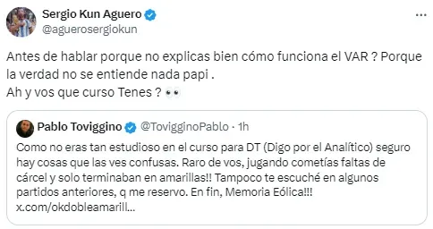 El ídolo de Independiente se sumó a la polémica y también disparó contra el tesorero de AFA en la red social al defender a Tevez: “Antes de hablar, ¿Por qué no explicás bien cómo funciona el VAR? Porque la verdad no se entiende nada, papi. Ah, ¿Y vos qué curso tenés?“.