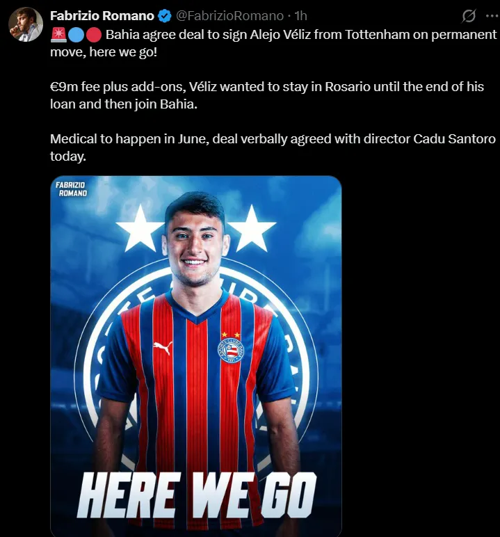 Según confirmó el periodista Fabrizio Romano en X, los Spurs acordaron con Bahía de Brasil la venta definitiva del futbolista de 22 años, que también había estado cedido en Sevilla y Espanyol, en 9 millones de euros más variables por objetivos.
