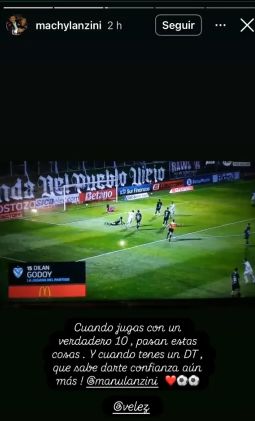 En su sexto partido con la camiseta de Vélez, Manuel Lanzini consiguió meter su primer gol luego de su salida de River. El mediocampista abrió la cuenta en la victoria del equipo de Guillermo Barros Schelotto ante San Martín de San Juan y su padre lo celebró con una picante dedicatoria.