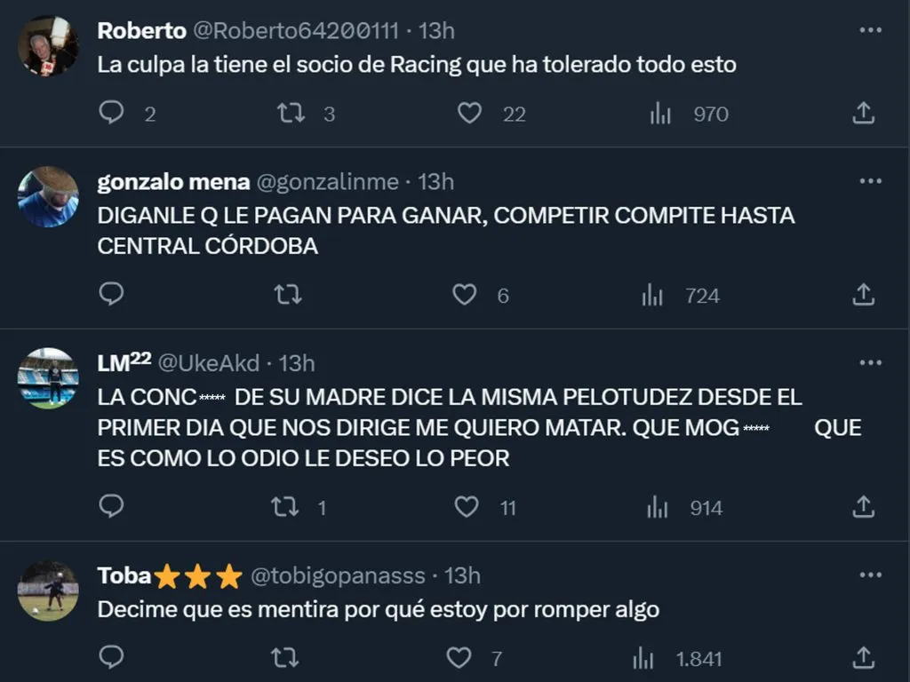 Los diferentes comentarios de los hinchas de Racing ante los dichos de Gago