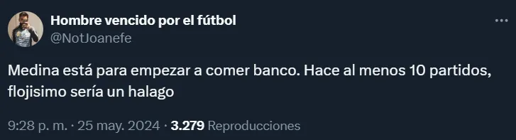 Por intermedio de las redes sociales, los fanáticos del club de La Ribera exteriorizaron su enojo por el rendimiento del mediocampista que ya se ganó un lugar como titular prácticamente indiscutido dentro del andamiaje de Martínez en la zona de medular. A tal punto que lo hicieron tendencia en X con mensajes muy claros.