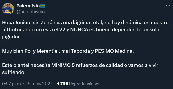 Es que en el anfitrión hubo varios puntos flojos como Marcelo Saracchi, Vicente Taborda, Cristian Medina y compañía. Precisamente, los hinchas del conjunto Xeneize pusieron especial énfasis en el último de los mencionados, viéndose un tanto sorprendidos porque suele ser una de las figuras principales pero no estuvo fino ante Talleres.