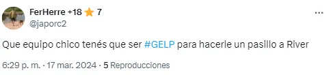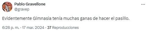 En la salida de los equipos al campo, los jugadores del Lobo aprovecharon la derrota de su rival de toda la vida para generar cargadas y, en segundo plano, felicitar al Millonario. En redes, los hinchas se burlaron de Gimnasia por prestarse a este homenaje.