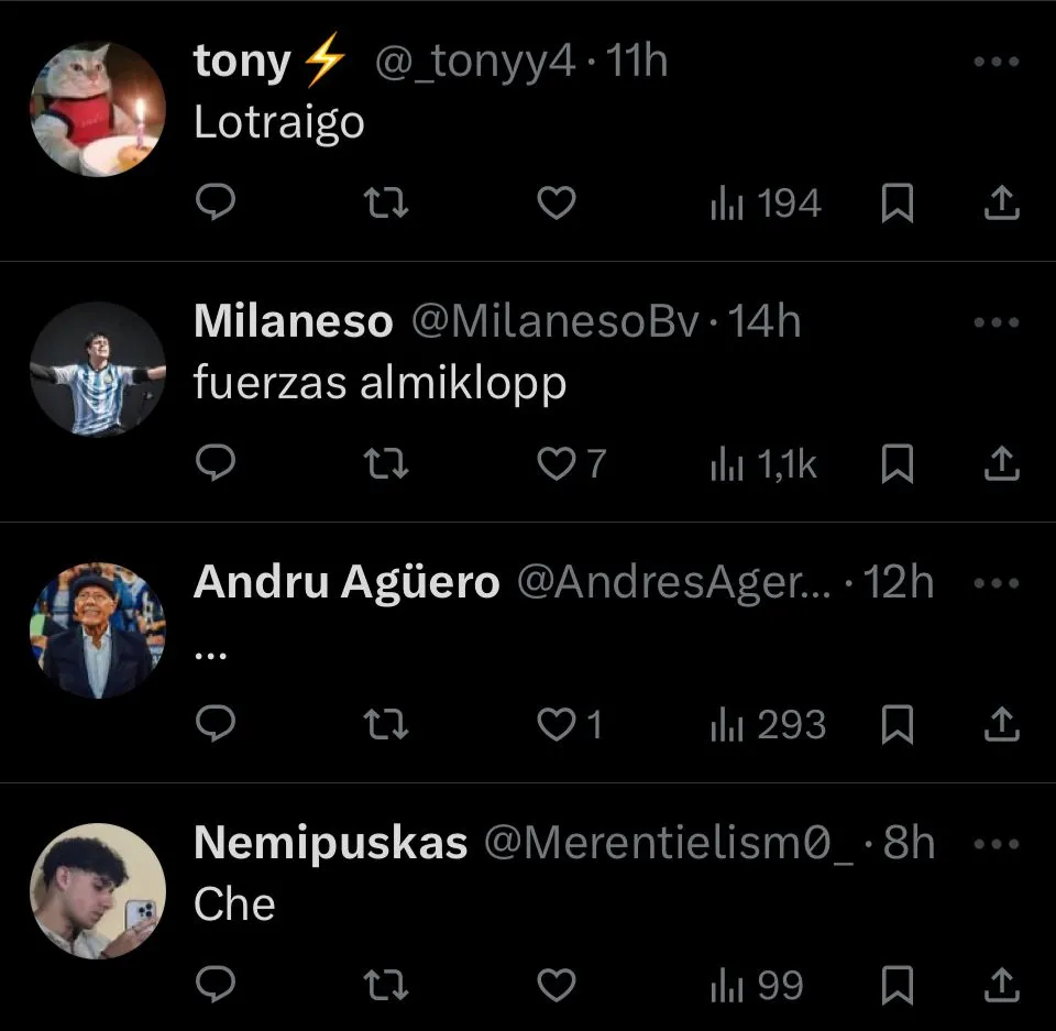“Ya fue no?“, escribió el usuario @Mattenr12, en la misma sintonía en la que se mostraron otros fanáticos. Otros recordaron la declaración del propio Almirón asegurando que en el futuro tendrá un nuevo ciclo en el club, mientras que hinchas como @leonelm34 expresaron su apoyo ante un hipotético segundo ciclo basándose en cuestiones tácticas. “Entendió todo en la final de la Libertadores“, sostuvo. A su vez, el humor tampoco faltó.