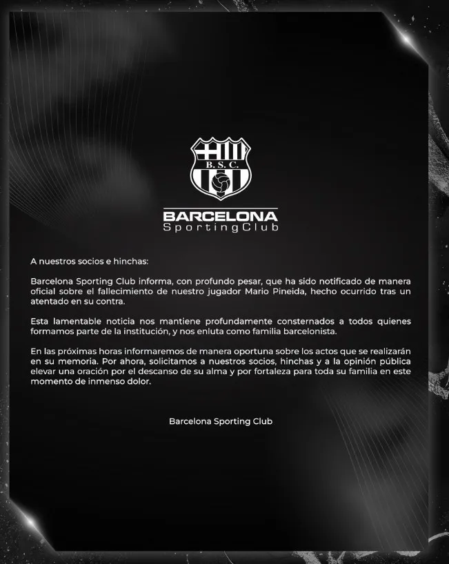 Una vez más, el ámbito del fútbol y del deporte en general se ve completamente sacudido como consecuencia de una triste noticia. Sucede que Mario Pineida, reconocido futbolista de Barcelona Sporting Club de Guayaquil y con un paso por la Selección de Ecuador, murió en las últimas horas debido a un atentado sufrido en su contra.