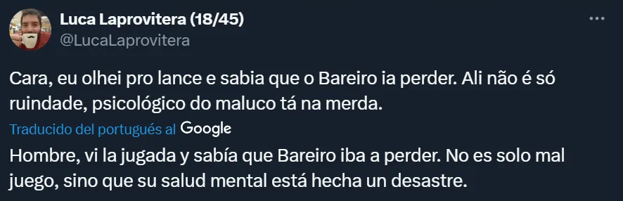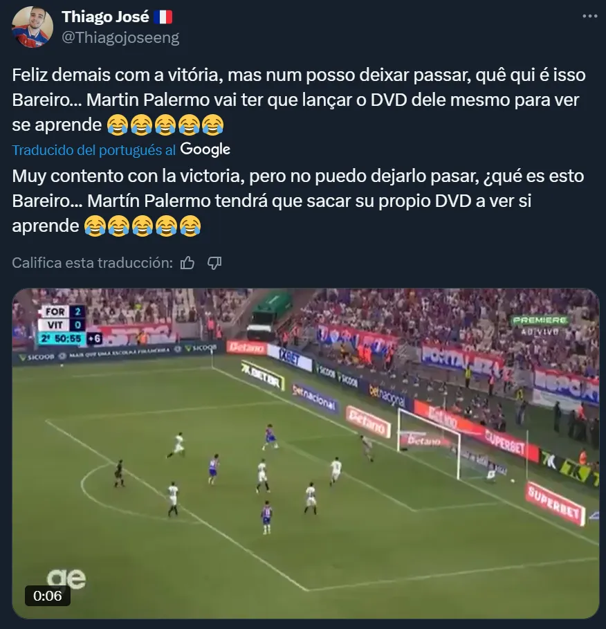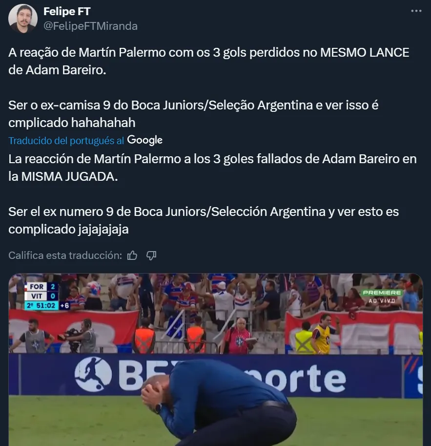 El delantero paraguayo tuvo situaciones claras de gol, no pudo resolver bien ninguna y se hizo viral una reacción de Martín Palermo luego de un mano a mano desperdiciado. El Titán se agarró la cabeza y llevó las rodillas al piso, una clara señal de no poder creer lo que estaba viendo. Pese a la mala actuación de Bareiro, Fortaleza sumó de a tres y sueña con mantener la categoría. Cabe destacar que en los últimos años fue uno de los equipos brasileños que siempre disputó competiciones internacionales, por lo que resulta extraño verlo en esta situación.