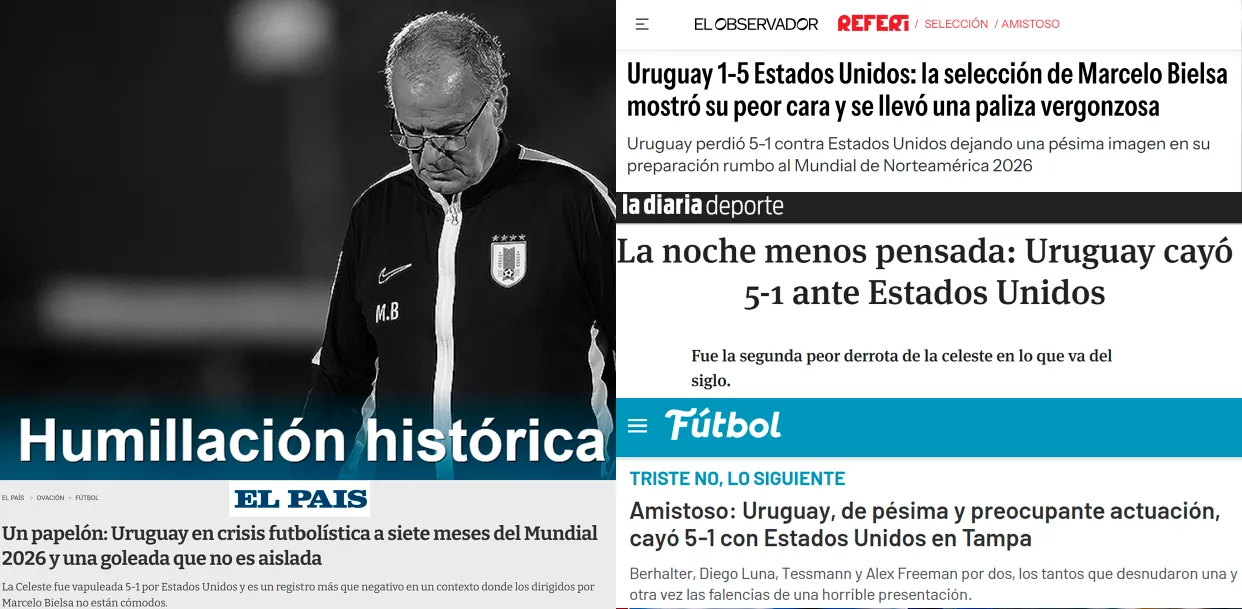El combinado sudamericano atraviesa una profunda crisis futbolística a solo siete meses del Mundial 2026. La gran versión que mostró en el inicio del ciclo del Loco, que comenzó a desmoronarse luego de la Copa América 2024, ya quedó muy lejos. Por eso, los medios uruguayos no tuvieron piedad con el estratega argentino.