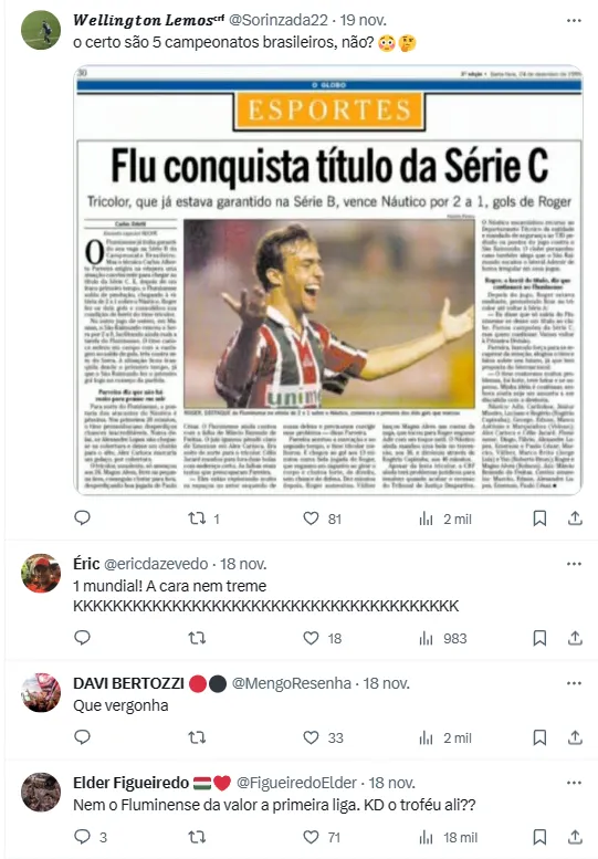 En el mural se puede apreciar una silueta que indica que Fluminense es campeón del mundo. Si bien hubo burlas por parte de hinchas de otros clubes de Brasil, pensando que se trataba de la adjudicación temprana del Mundial de Clubes que se jugará en diciembre, en realidad se trata de la Copa Río de 1952.
