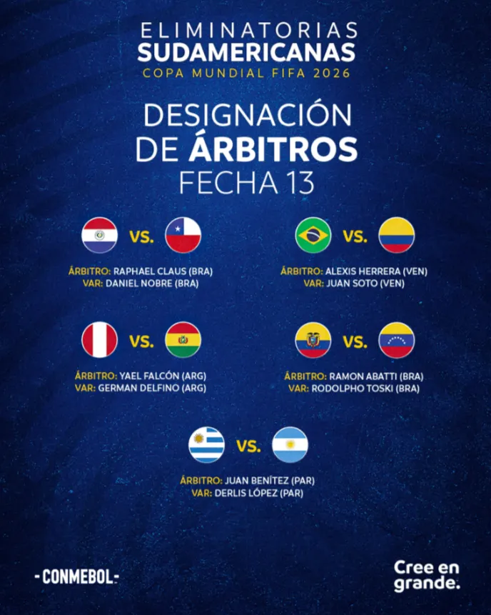 Fechas y sedes de la fecha 13 de las Eliminatorias CONMEBOL para el Mundial 2026