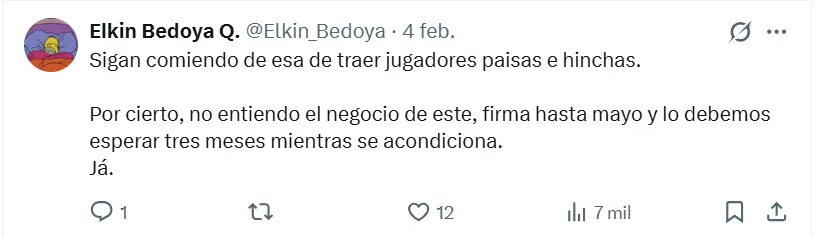 En definitiva, San Lorenzo y Talleres intentaron acercarle una propuesta pero las pretensiones salariales son muy elevadas para las economías de dichos elencos. Ya en su tierra natal, América de Cali, Deportivo Cali y Atlético Nacional consultaron su situación, pero no pasó a negociaciones formales. El que sí avanzó mucho fue Independiente Medellín, pero ahora resta saber el desenlace.