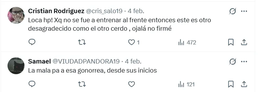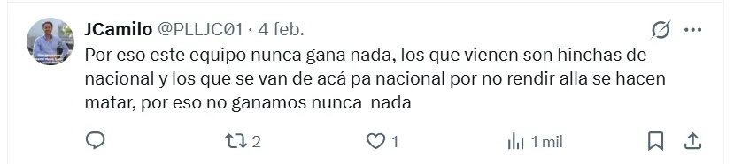 Las imágenes son evidentes y no mienten. La reacción fue inmediata: los hinchas se niegan a la llegada de Fabra en este mercado de pases y pretenden que se desestime su contratación, a pesar de ser agente libre. Al mismo tiempo, algunas fuentes locales indican que el video es de diciembre cuando todavía no había gestiones en curso, pero la postura de los simpatizantes es la misma.