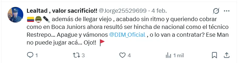 - El lateral izquierdo está en tratativas formales para sumarse al conjunto colombiano, pero los hinchas se niegan al fichaje.