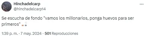 Es que se trata de un cántico particular de los seguidores del equipo de Núñez: “Vamos los Millonarios, pongan huevo para ser primeros“. Los hinchas coparon el posteo del Flu con más referencias sobre River. La inclusión de la canción toma aún más fuerza tras la final que los brasileños le ganaron a Boca.