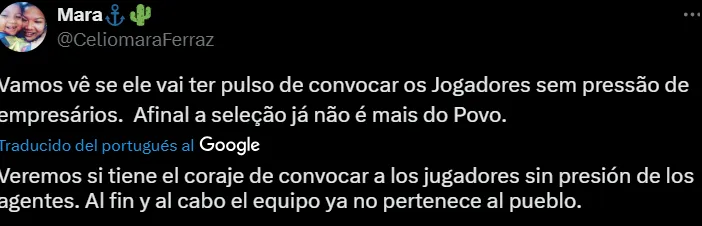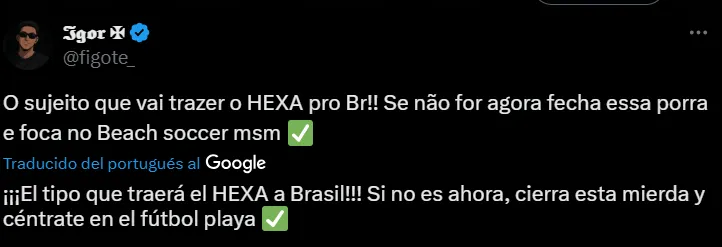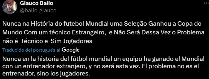 Siguiendo con las reacciones, se vio positivismo en el público brasileño, ya que confían en el nuevo entrenador. Tal es así, que aseguraron que volverán a ganar la Copa del Mundo en 2026 o 2030 si dejan trabajar al italiano con normalidad.