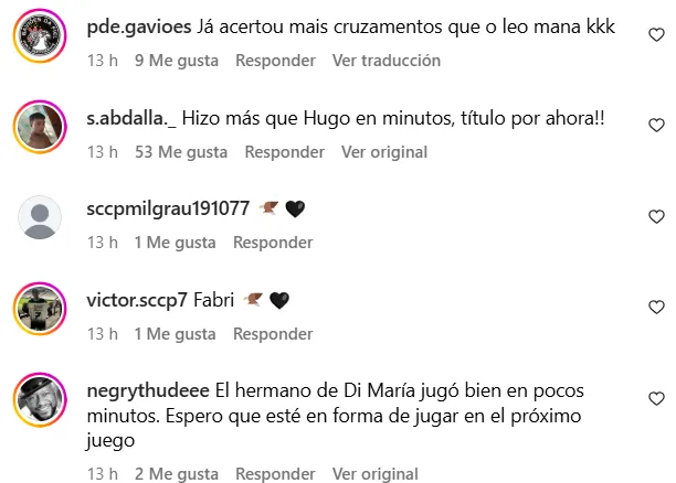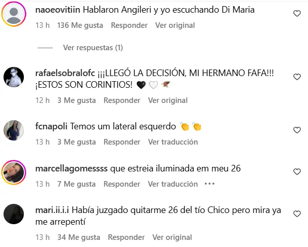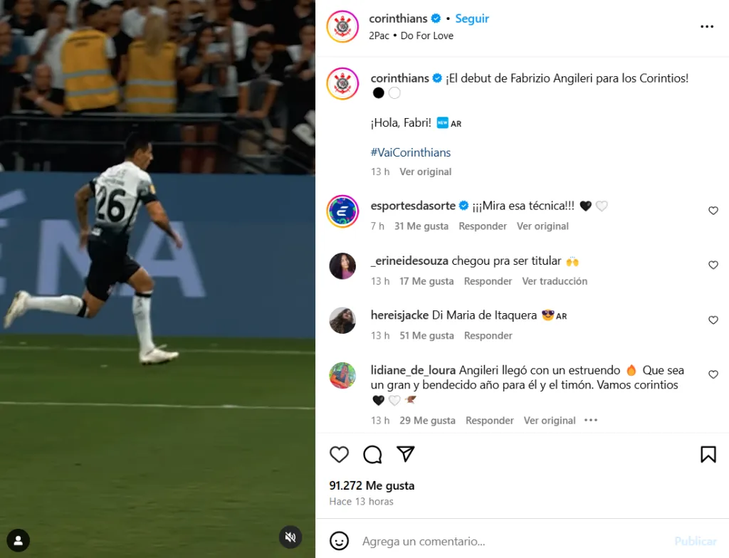 Angileri ingresó a los 21 minutos del segundo tiempo, con el dorsal 26, y tuvo interesantes apariciones, con escaladas hasta el fondo de la cancha. Corinthians compartió un video en sus redes sociales con las mejores acciones del ex jugador de River y los comentarios se llenaron de elogios. Inclusive algunos llegaron a con Ángel Di María. Los de Ramón Díaz tienen varios partidos importantes por delante y lo más probable es que apele a la rotación, por lo que Angileri tendrá oportunidades de sumar minutos, mostrarse y ganarse el puesto.