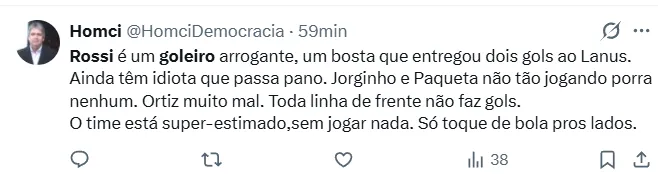 “Burro”, “le regaló dos goles a Lanús”, “está concediendo los goles más fáciles del planeta“, fueron algunas de las reacciones de la hinchada de Flamengo en X. Lo cierto es que el equipo de Filipe Luis no tuvo un sólido inicio de 2026, algo inesperado por la inversión multimillonaria que hizo en el mercado de pases.