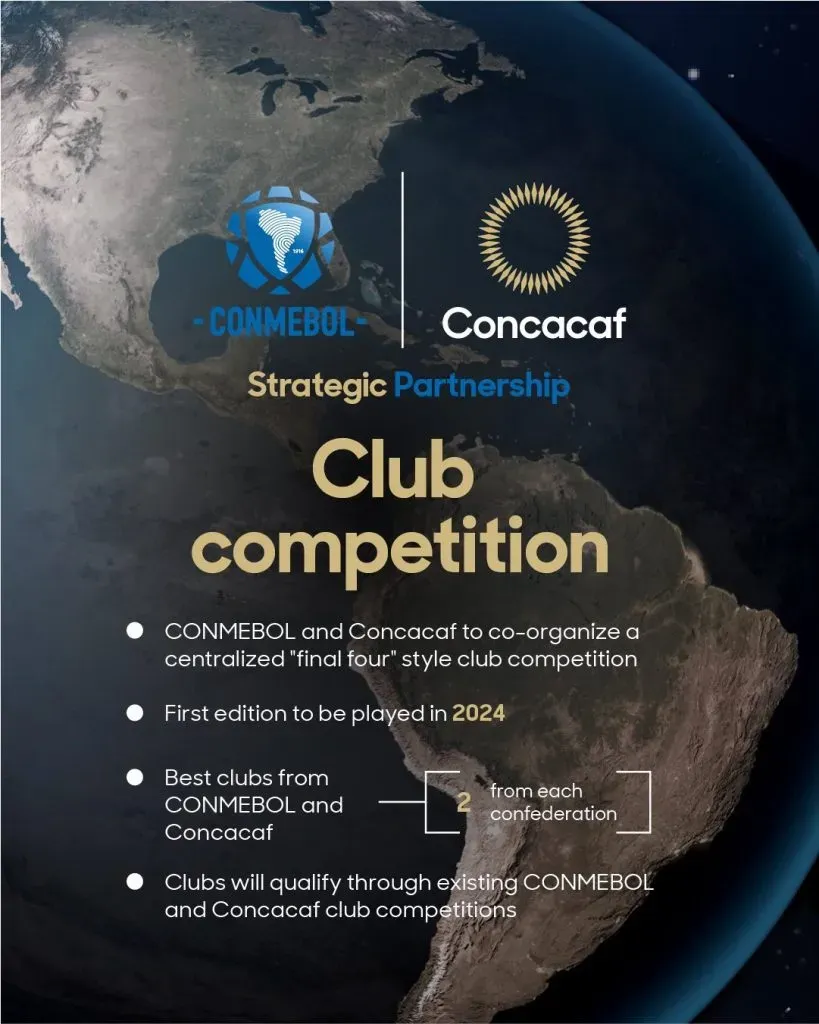 La alianza estratégica constaría de un torneo con cuatro participantes, los dos mejores de CONMEBOL y los dos mejores de CONCACAF. Si bien el sistema de clasificación no se detalló hasta el momento, el boleto se obtendrá de las máximas competencias de cada confederación (Libertadores y Concachampions) y la primera edición se llevará a cabo en 2024. En caso de que Inter Miami obtenga el pase a este nuevo certamen, tendrá la oportunidad de chocar contra clubes de Sudamérica. La expectativa es enorme.