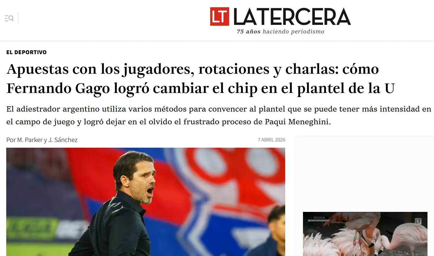Haciendo referencia al “efecto Gago”, el diario La Tercera señaló varios aspectos que el ex Boca y Racing logró modificar y que reconoció el propio Eduardo Vargas, un referente del plantel con importante pasado en la Selección de Chile, con la que fue bicampeón de América: “Cambiamos el chip. Lo que pasó con el entrenador pasado ya quedó atrás”, dijo el delantero tras la última victoria.