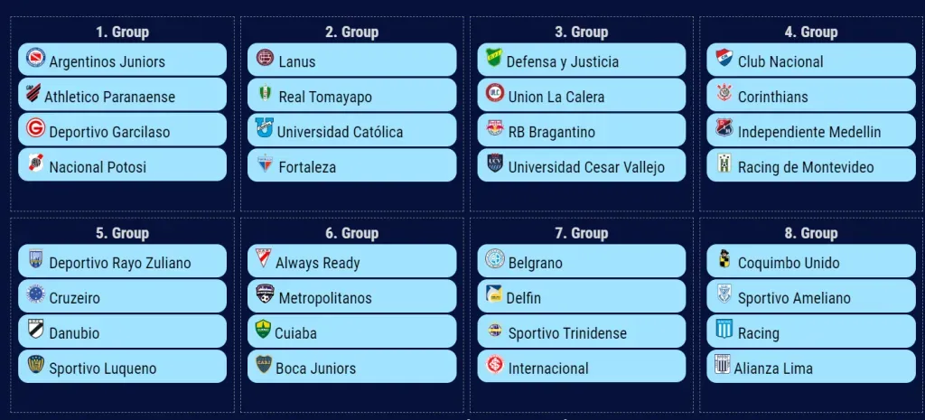 Durante la previa de este sorteo, en el que se encontrarán 7 equipos de la República Argentina (Boca Juniors, Racing Club, Defensa y Justicia, Lanús, Argentinos Juniors y Belgrano de Córdoba), en BOLAVIP hicimos una simulación para ver en qué grupo puede caer cada uno.