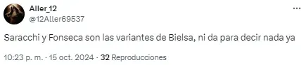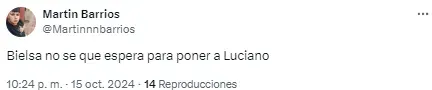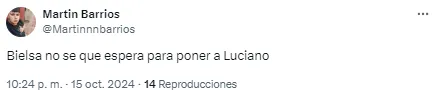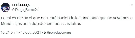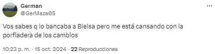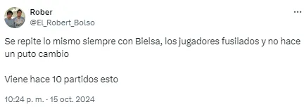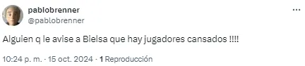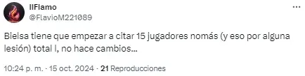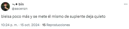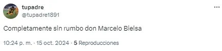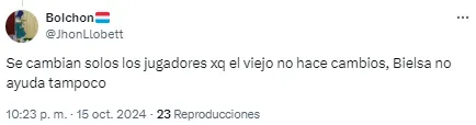 Al entrenador argentino le apuntaron por el planteo ante los ecuatorianos y sus decisiones en cuanto a los cambios en el complemento. “Alguien que le avise a Bielsa que hay jugadores cansados“, disparó uno de los usuarios en cuanto a las reacciones tardías del DT.