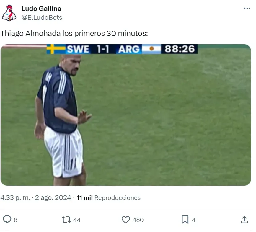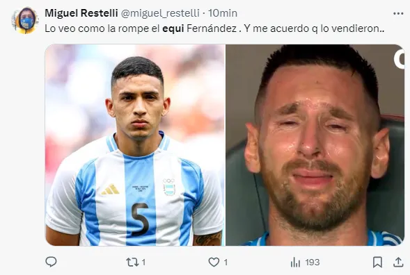 La Selección Argentina perdió ante Francia en cuartos de final y se despidió de los Juegos Olímpicos de París 2024. El equipo de Javier Mascherano no pudo revertir el golpe en el primer tiempo tras el gol de Mateta y en X (ex Twitter) no lo perdonaron con los memes.