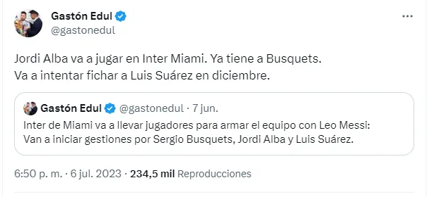 Según informa el periodista Gastón Edul, Jordi Alba será nuevo jugador del equipo de David Beckham, tras quedar con el pase en su poder del Barcelona y quedarse con la Nations League con la Selección de España, luego de vencer en la final a Croacia por penales.