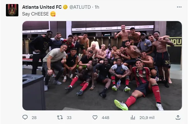 Minutos más tarde, la chicana continuó, ya que subieron otro posteo, con la foto del plantel celebrando la victoria en el vestuario local, y lo acompañaron de la frase “Digan queso”, reemplazando la famosa “Digan whisky”.