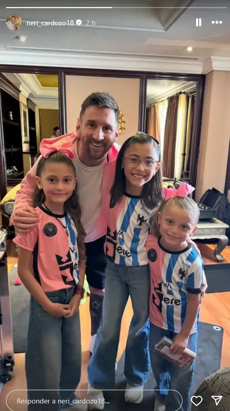 Como curiosidad, las hijas de Cardozo vistieron una llamativa camiseta para el encuentro con el astro. Su vestimenta incluía tanto el diseño de Rayados como el de Inter Miami, repartidos de manera vertical por la mitad.
