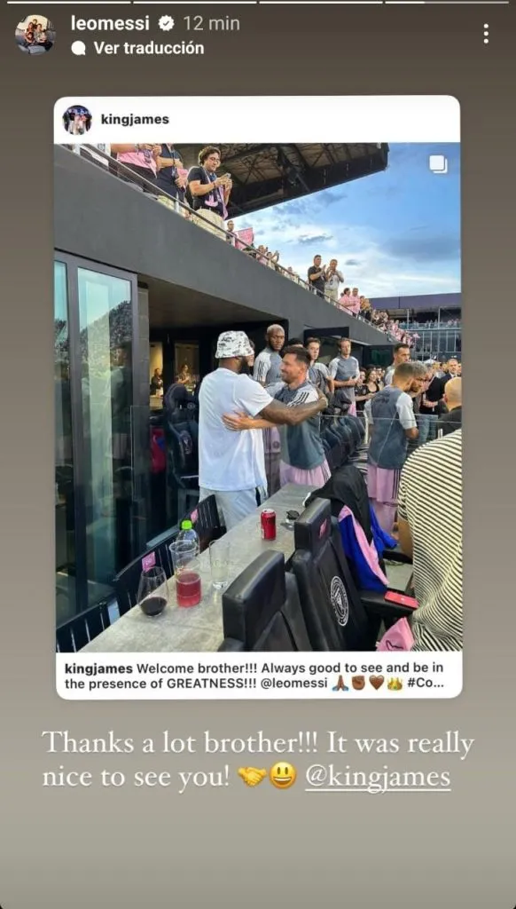 “¡¡¡Muchas gracias hermano!!! ¡Fue muy agradable verte!”, contestó, con la misma frase que puso en una historia de Instagram, en la que reposteó la publicación de LeBron James.