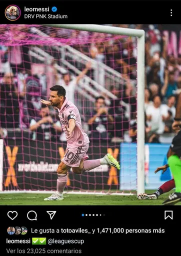 Una vez que finalizó el partido en Fort Lauderdale, Messi tomó su teléfono celular, ingresó a su cuenta de Instagram y realizó un posteo que, rápidamente, se llenó de ‘likes’ y comentarios. En tan solo media hora, había recibido más de 1 millón de ‘likes’ y más de 25 mil respuestas.