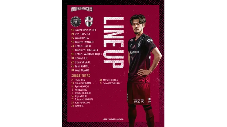 Vissel Kobe también confirma su once para enfrentar al Inter Miami