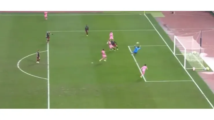 El delantero del Vissel Kobe impactó un centro desde la derecha contra el palo del arco defendido por Callender. Se salva el Inter Miami.